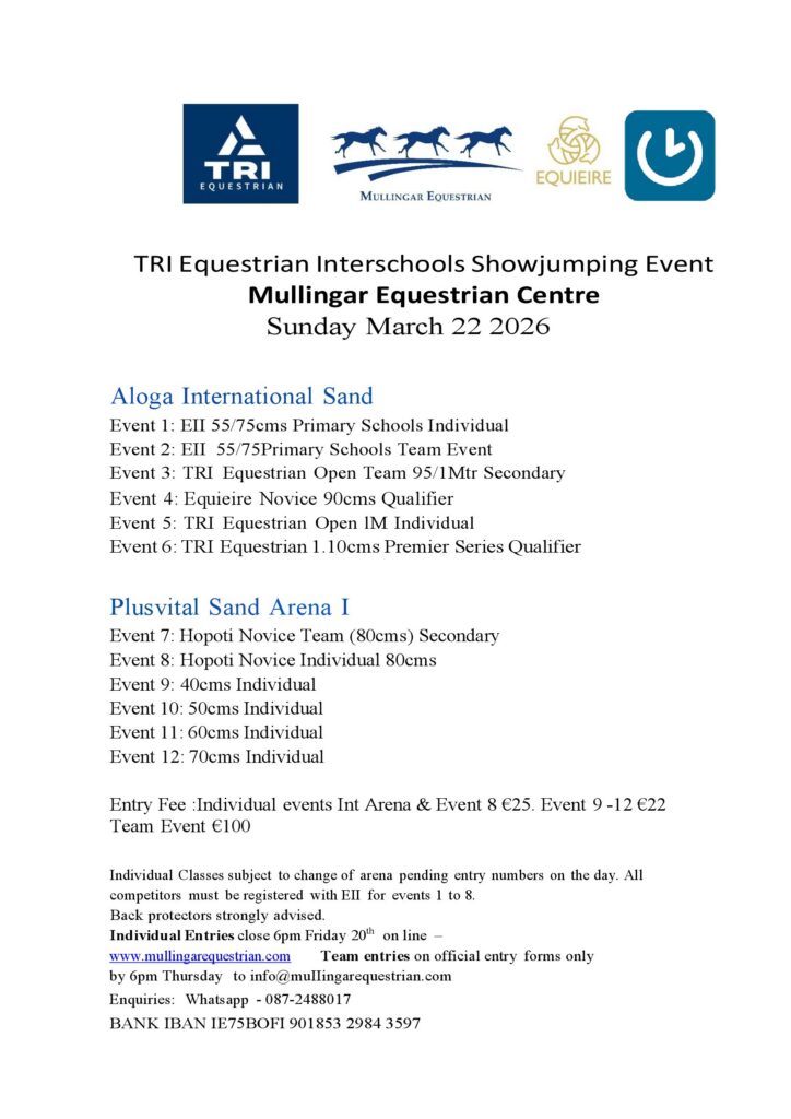 Always a popular day on the calendar, we look forward to welcoming the EII Interschools to Mullingar on the 22nd March . Check out schedule & entry forms below . Individual entries close at 6pm Friday March 20
